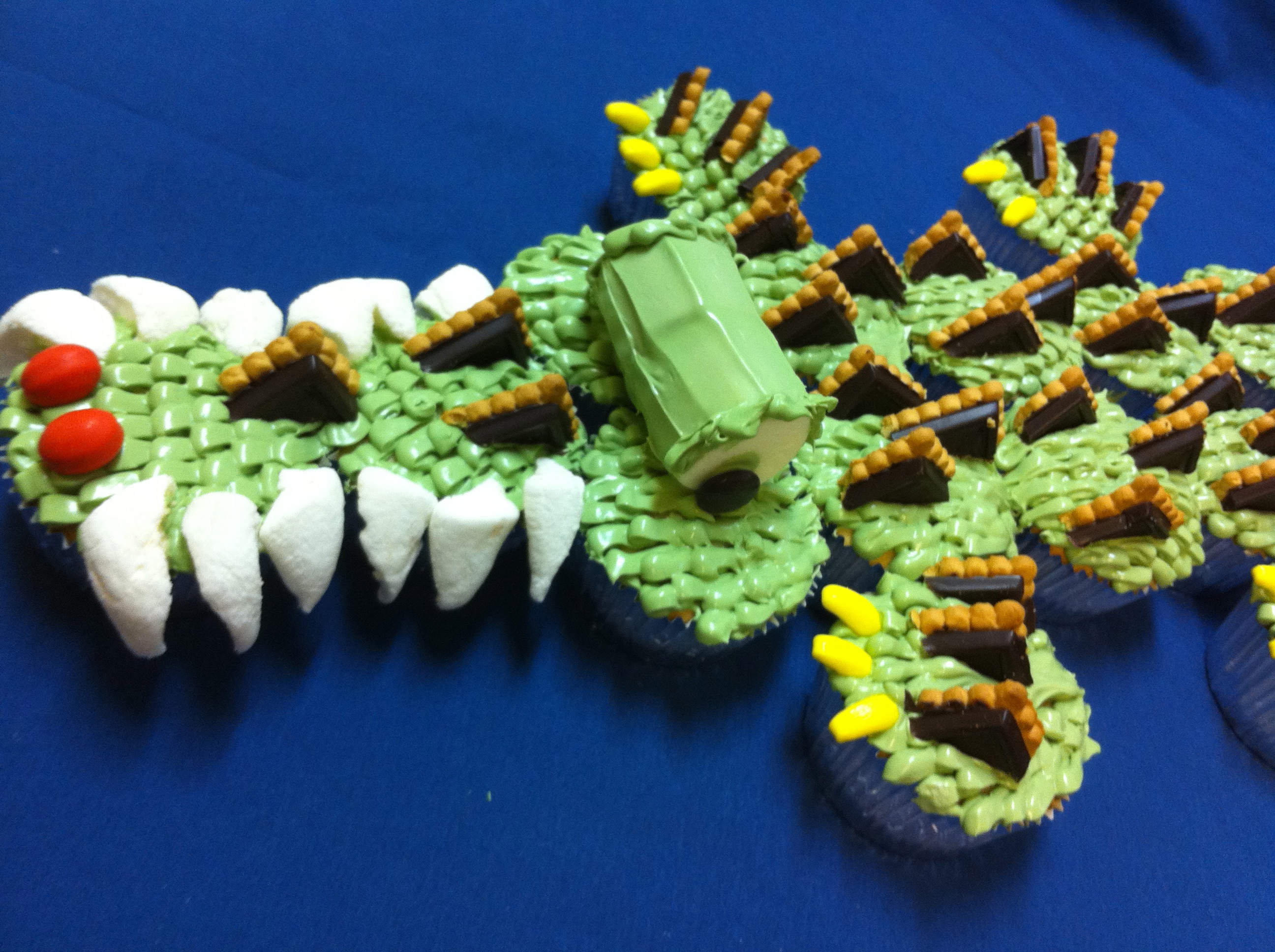 Marshmallow eyes and teeth may look fierce but they’re not all that functional as a defence against hungry folks. And our old standby, Runts, rounded out the final details for claws and nostrils.